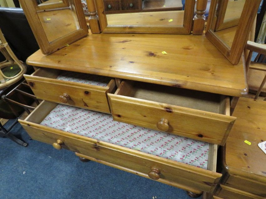 A DUCAL HONEY PINE FOUR DRAWER CHEST AND A MIRROR W-86 CM