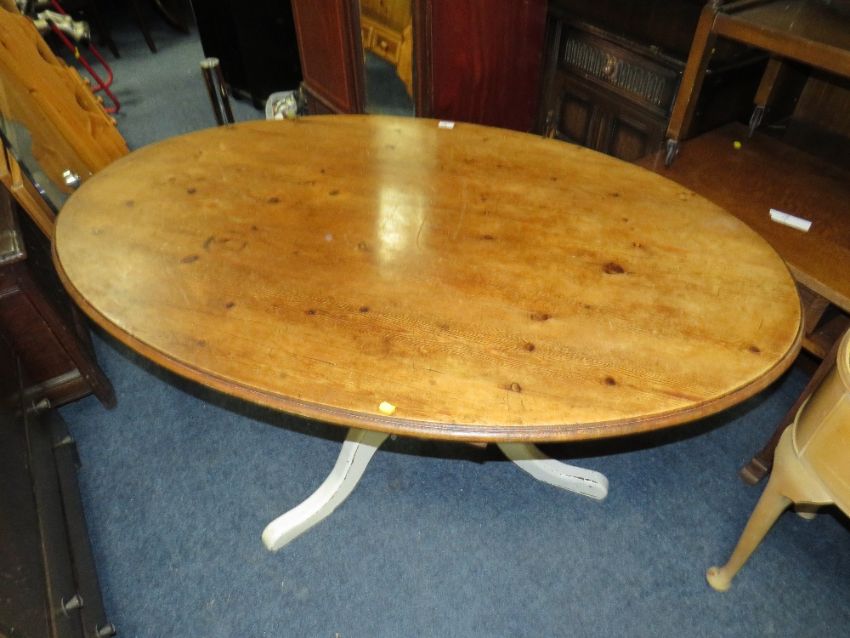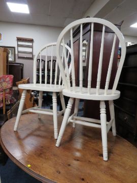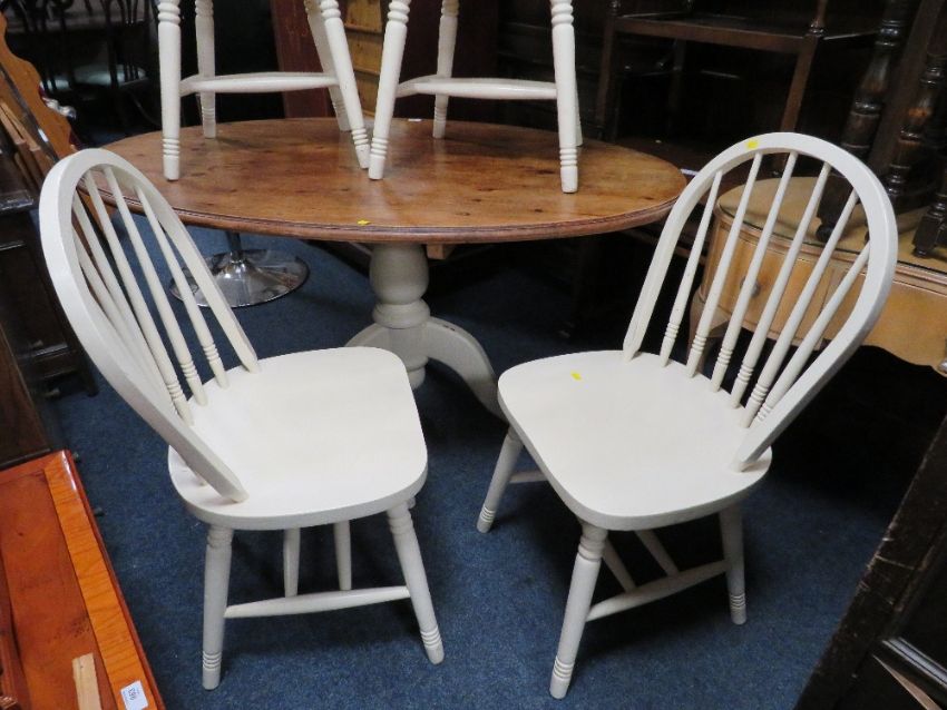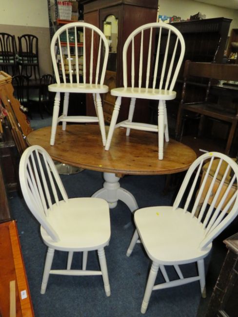 A VINTAGE PINE SHABBY CHIC STYLE TABLE WITH FOUR CHAIRS W-150 CM