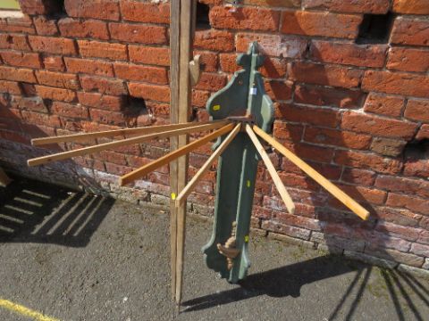A VINTAGE 19TH CENTURY WASHING LINE PROP TOGETHER WITH A FRENCH CORNER DRYING RACK (2)