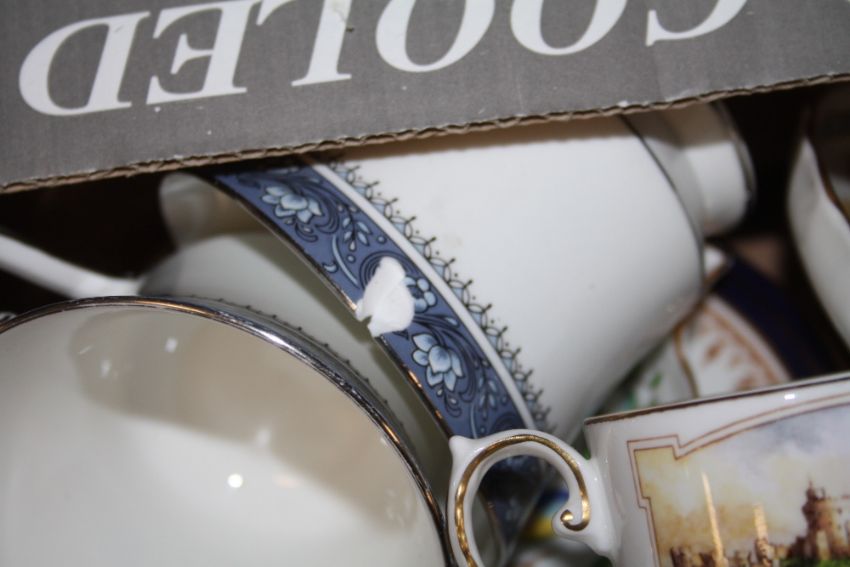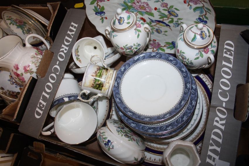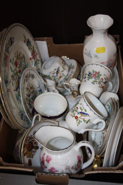 TWO SMALL TRAYS OF ASSORTED AYNSLEY CHINA AND CERAMICS TO INCLUDE PEMBROKE, ELIZABETH ROSE AND BLUE MIST