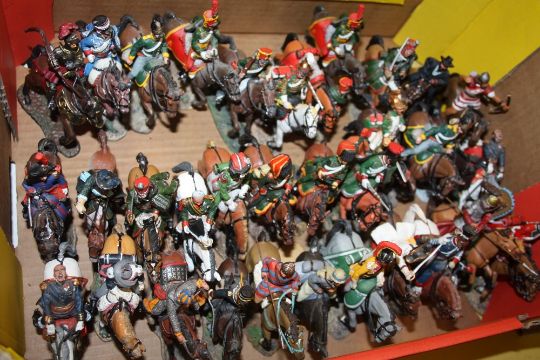 TWO BOXES OF DEL PRADO LEAD SOLDIERS ON HORSEBACK TOGETHER WITH A PLASTIC TRAY OF SOLDIERS FOR RESTORATION (3)