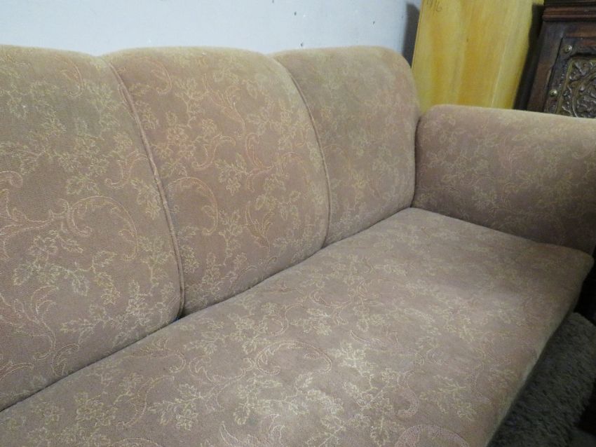 A VINTAGE 'DROP ARM'  3 SEATER SETTEE