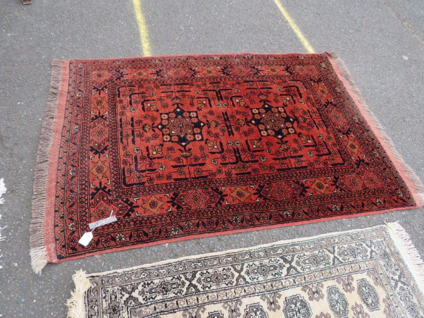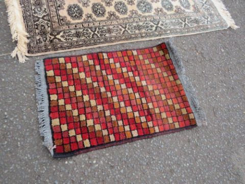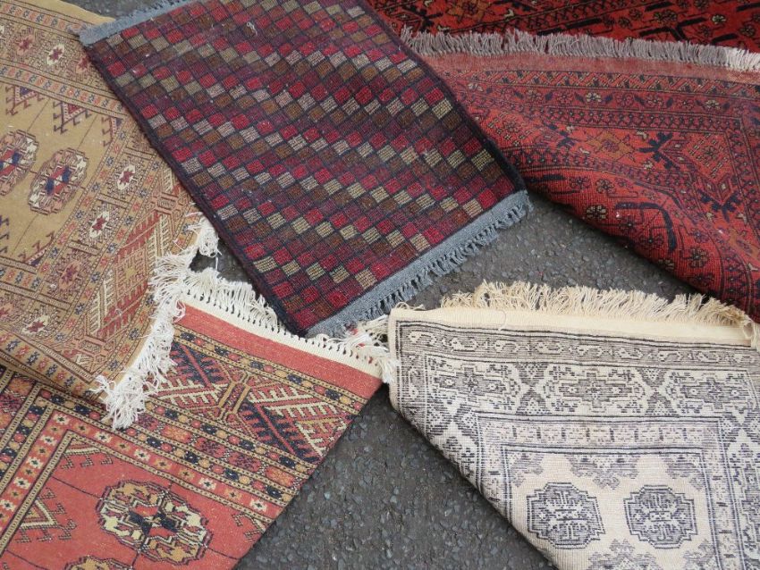 A SELECTION OF FIVE EASTERN WOOLLEN RUGS - LARGEST 146 X 104 CM