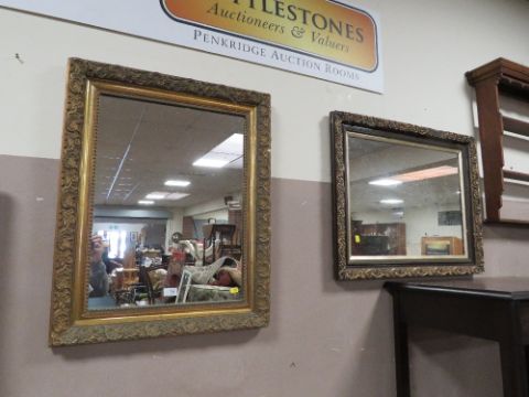 TWO VINTAGE RECTANGULAR GILT WALL MIRRORS 76 X 61 CM (LARGEST)