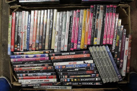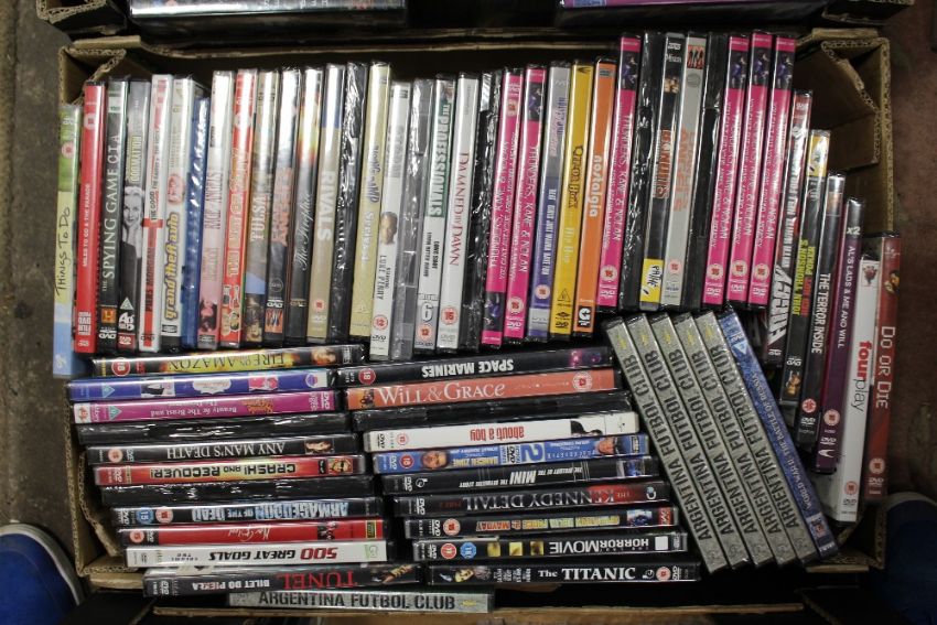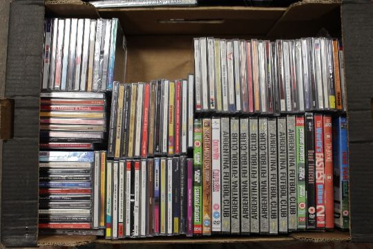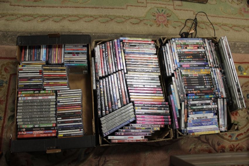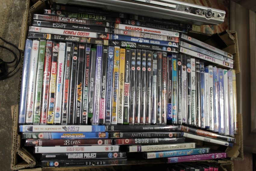 THREE BOXES OF CD's, DVD's AND DVD PLAYER