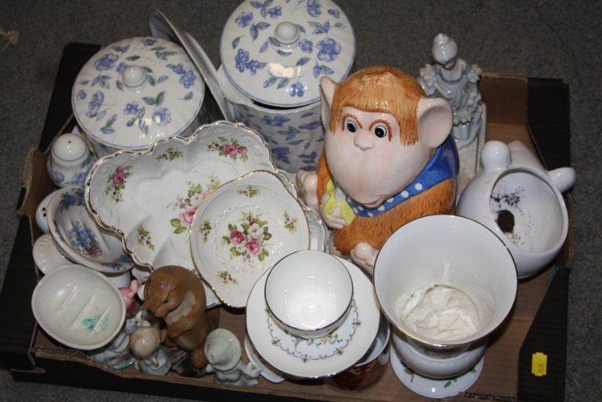 TWO TRAYS OF ASSORTED CERAMICS AND CHINA TO INCLUDE AJ WILKINSON DINNERWARE