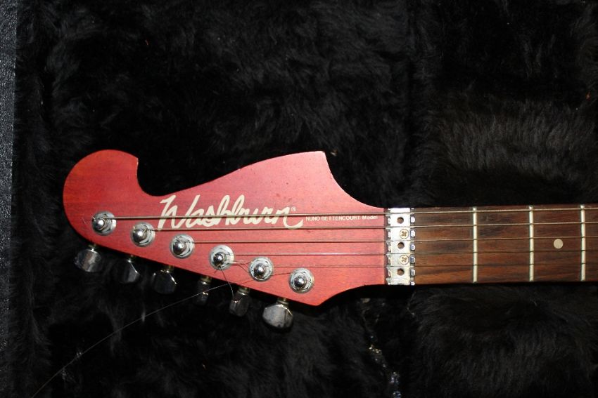 A WASHBURN NUNO BETTENCOURT MODEL LEFT HANDED ELECTRIC GUITAR WITH 2 HARD CASES