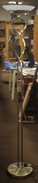 A MODERN STANDARD LAMP A/F TOGETHER WITH A WOODEN BIRD, H 187 CM