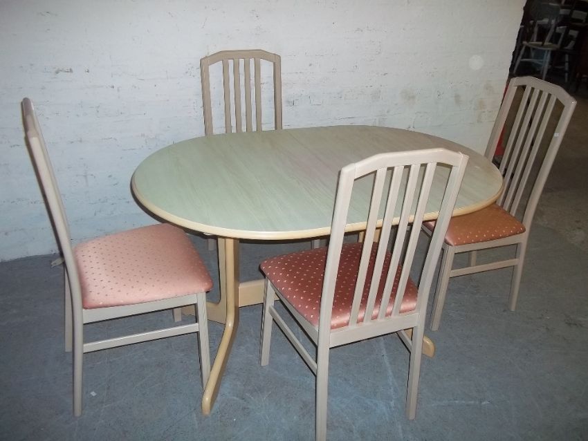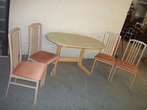 AN EXTENDING BEAUTILITY DINING TABLE AND FOUR CHAIRS