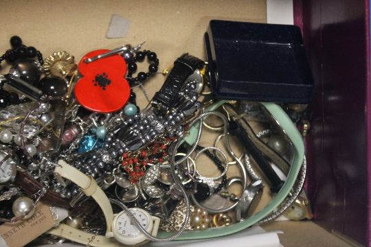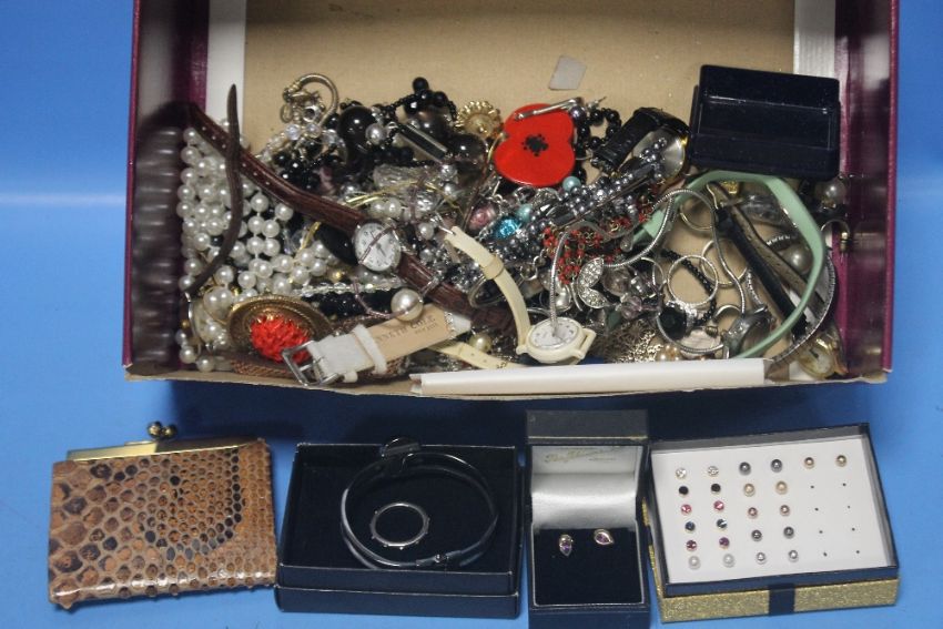 A QUANTITY OF COSTUME JEWELLERY TO INCLUDE WRIST WATCHES