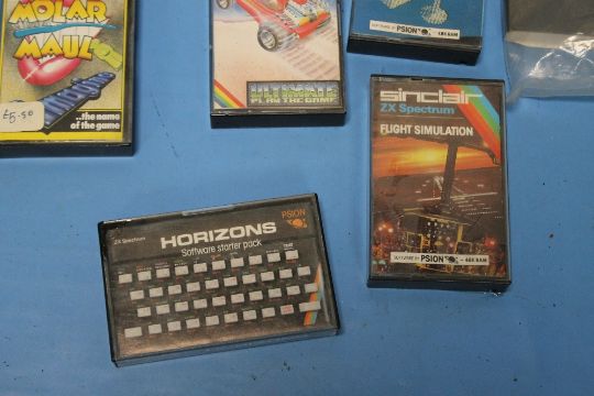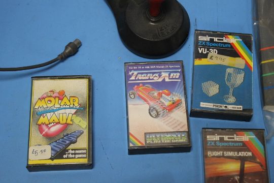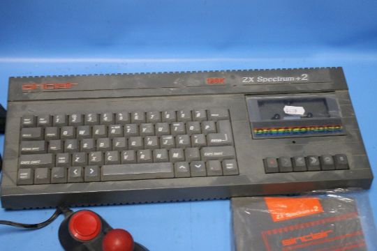 A SINCLAIR ZX SPECTRUM +2 WITH A SMALL COLLECTION OF GAMES, JOY STICK ETC. A/F