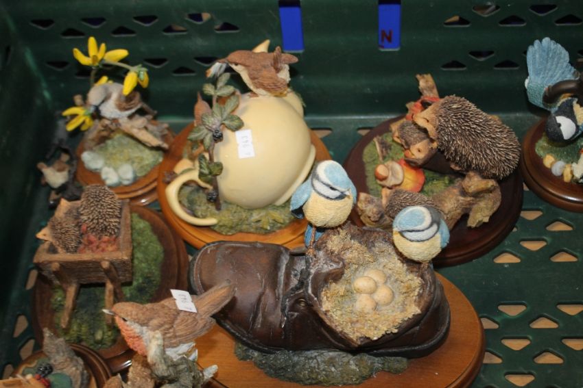 TWO TRAYS OF ANIMAL ORNAMENTS AND SUNDRIES TO INCLUDE A LAMP