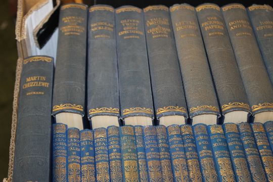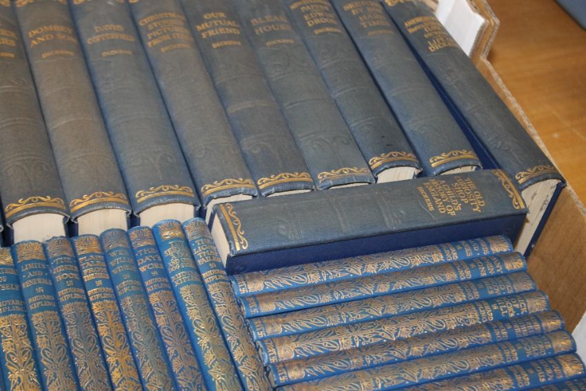 A TRAY OF BOOKS MAINLY CHARLES DICKENS SET 16 VOLUMES