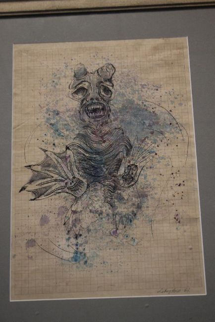JAN LEBENSTEIN - WATERCOLOUR AND INK ON GRAPH PAPER, signed lower right "Lebenstein 67", framed and glazed, frame size 60 x 50 cm