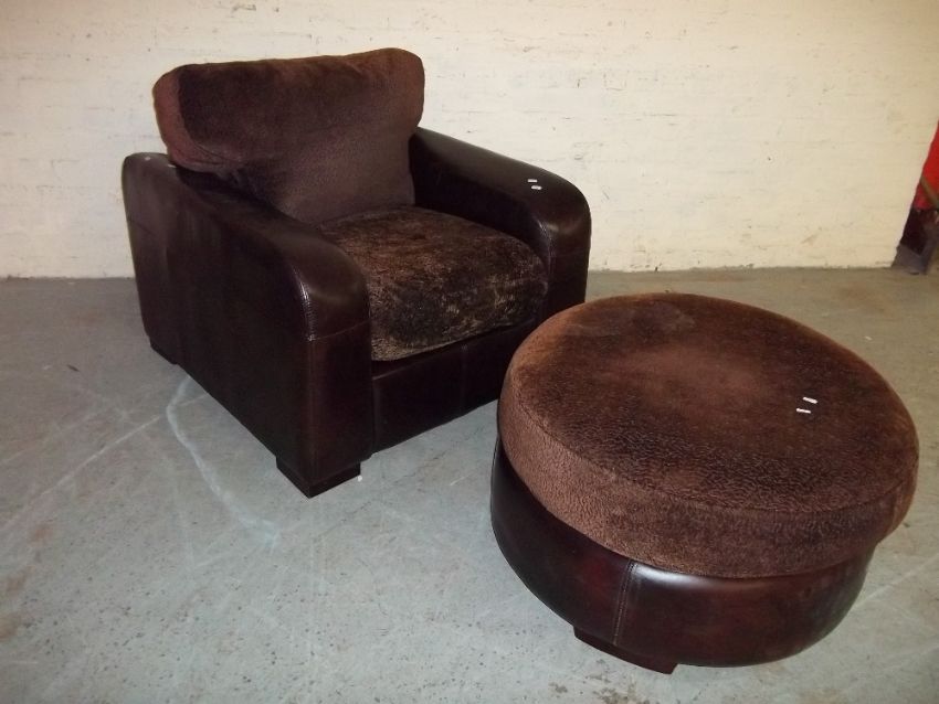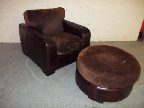 A SOFA CHAIR AND MATCHING POUFFE
