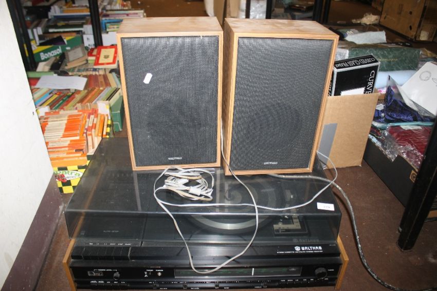 A WALTHAM STEREO RECEIVER WITH SPEAKERS (NO MODEL NUMBER TO BE SEEN)