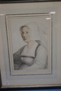 TWO PORTRAITS AFTER HANZ HOLBINE "EDWARD STANLEY EARLE OF DERBY" AND A LADY 55 X 42 CM