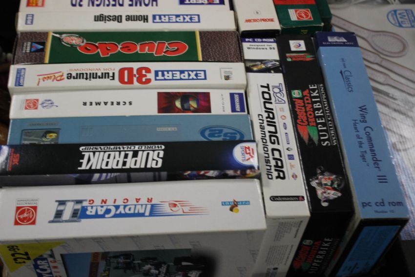 A TRAY OF BOXED PC GAMES TO INCLUDE MOTOR RACING ETC., HOME DESIGN 3D MISSING GAME, OTHERS DO HAVE CONTENTS (UNTESTED)