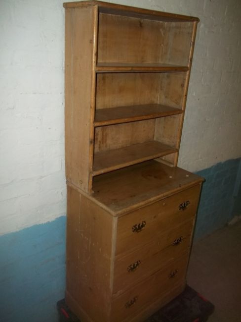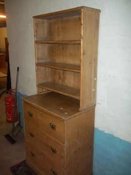 AN ANTIQUE PINE BOOKSHELF, H 163 cm, W 65 cm, D 400 cm