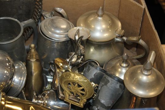 A TRAY OF METALWARE TO INCLUDE HORSE BRASSES (TRAY NOT INCLUDED)