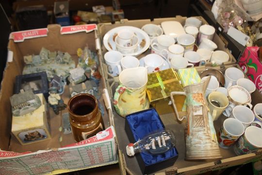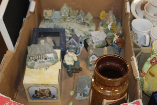 THREE TRAYS OF CERAMICS ETC. TO INCLUDE COTTAGES ETC. (TRAYS NOT INCLUDED)