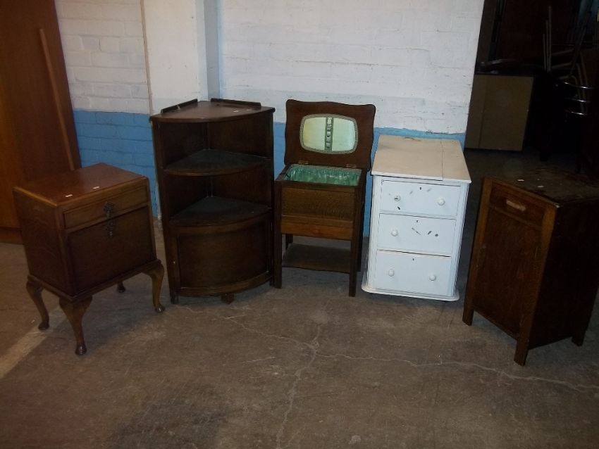 FIVE ITEMS COMPRISING A CHEST, THREE DRAWER CHEST, CORNER UNIT ETC.
