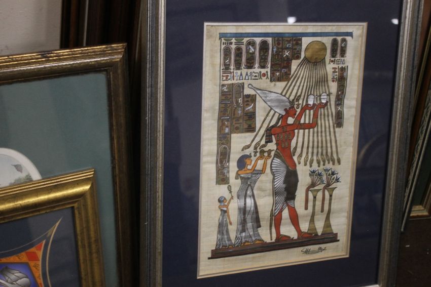 A COLLECTION OF REPRODUCTION FRAMED AND GLAZED PRINTS UNIFORM OF THE BRITISH INFANTRY AND YEOMANRY EACH 33 X 28 CM TOGETHER WITH A QUANTITY OF OTHER PICTURES PRINTS ETC TO INCLUDE EGYPTIAN STYLE PRINTS AND A FRAMED AND GLAZED PRINT ENTITLED 'A RATHER FAST STEEPLECHASE' BY JOHN LEECH, THREE FRAMED AND GLAZED PRINTS TO INCLUDE 'REID'S RAILWAY RIDE FROM LONDON TO DUBLIN VIA THE LONDON AND NORTH WESTERN AND CHESTER AND HOLYHEAD RAILWAYS'