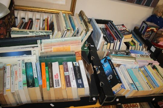 FOUR BOXES OF MISCELLANEOUS BOOKS (TRAYS NOT INCLUDED)