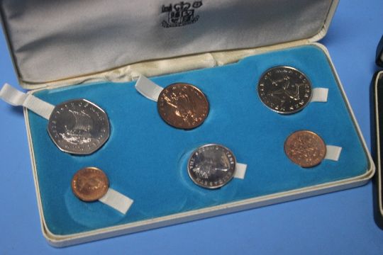BARBADOS 1974 PROOF SET, British Virgin Islands 1974 proof set, Isle of Man 1971 proof set, Guernsey 1966 proof set and Gambia 1966 set