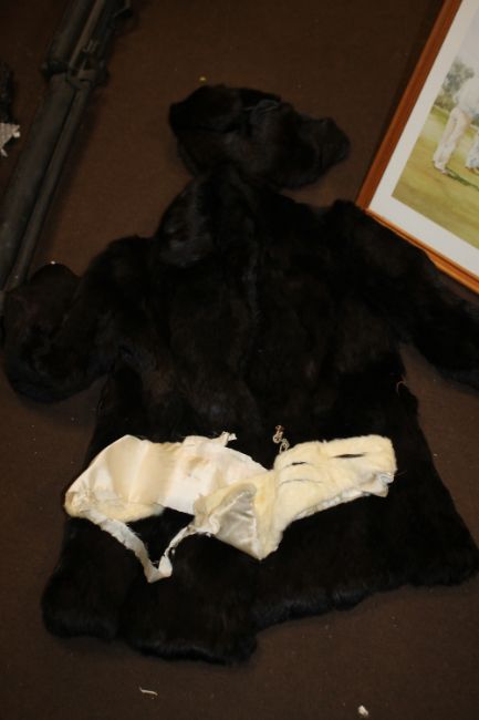 A FUR COAT SIZE 16 TOGETHER WITH A MATCHING FUR HAT AND A WHITE FUR COLLAR