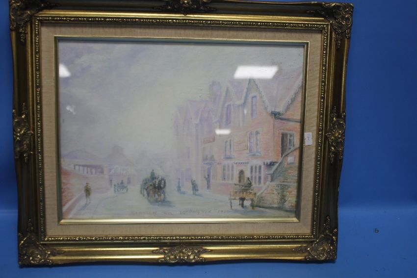 A GILT FRAMED VIEW OF STATION ROAD WELLINGTON 43 X 53 CM TOGETHER WITH TWO OTHERS