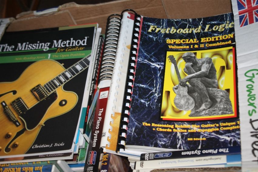 TWO TRAYS OF MUSIC RELATED BOOKS (TRAYS NOT INCLUDED)