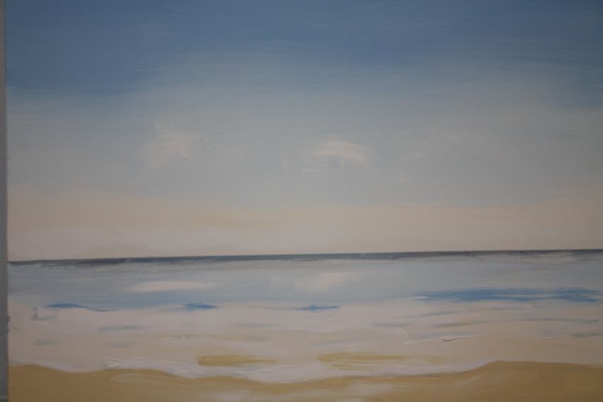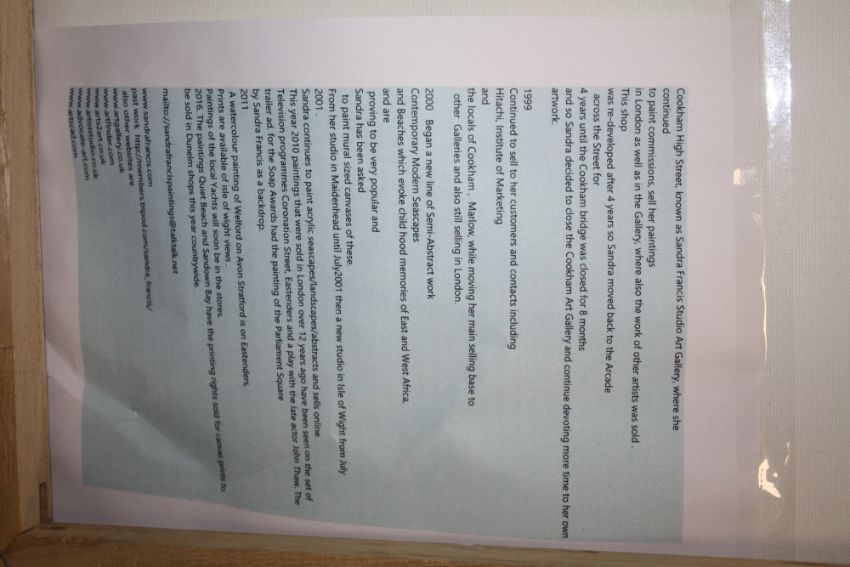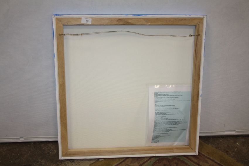A MODERN OIL ON CANVAS OF A SEASCAPE BY SANDRA FRANCIS (SEE INFORMATION VERSO) 61 X 61 CM