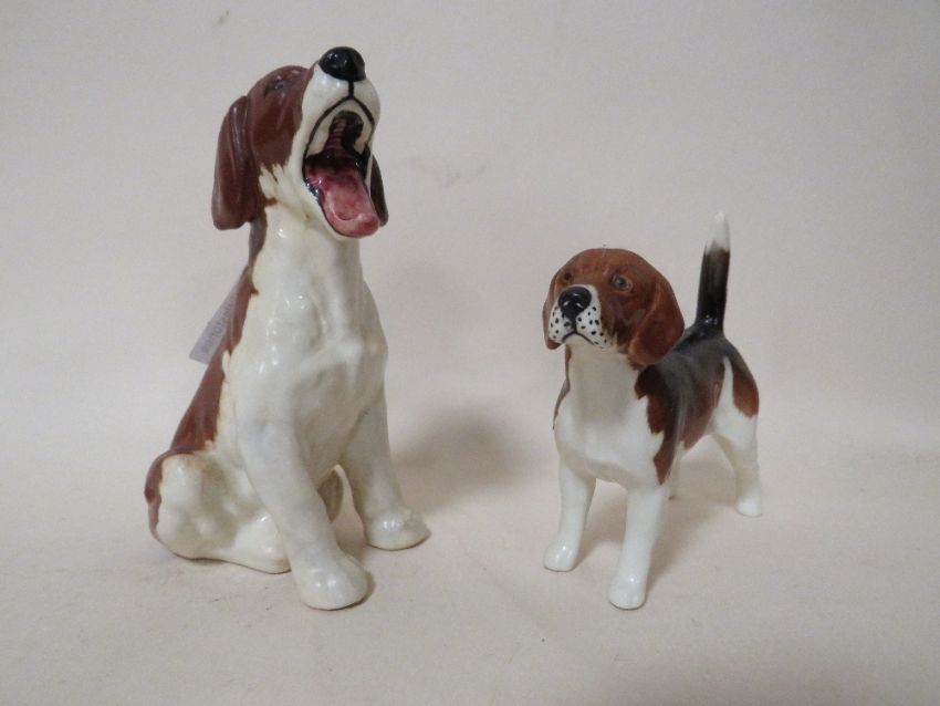 A BESWICK YAWNING BEAGLE TOGETHER WITH BESWICK 'WENDOVER BILLY' (2)