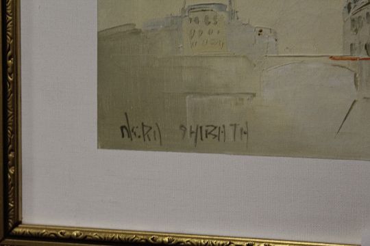 GILT FRAMED OIL ON CANVASS DEPICTING PARISIAN SCENE SIGNED AKIRA SHIBATA LOWER LEFT