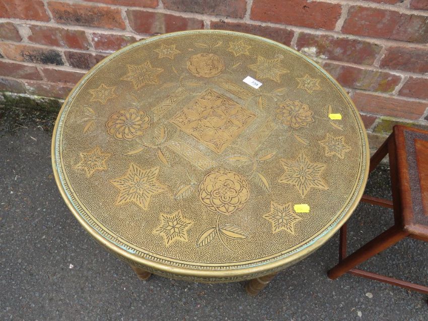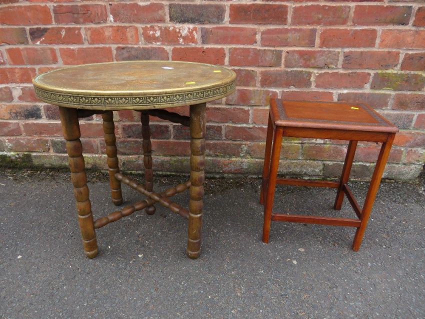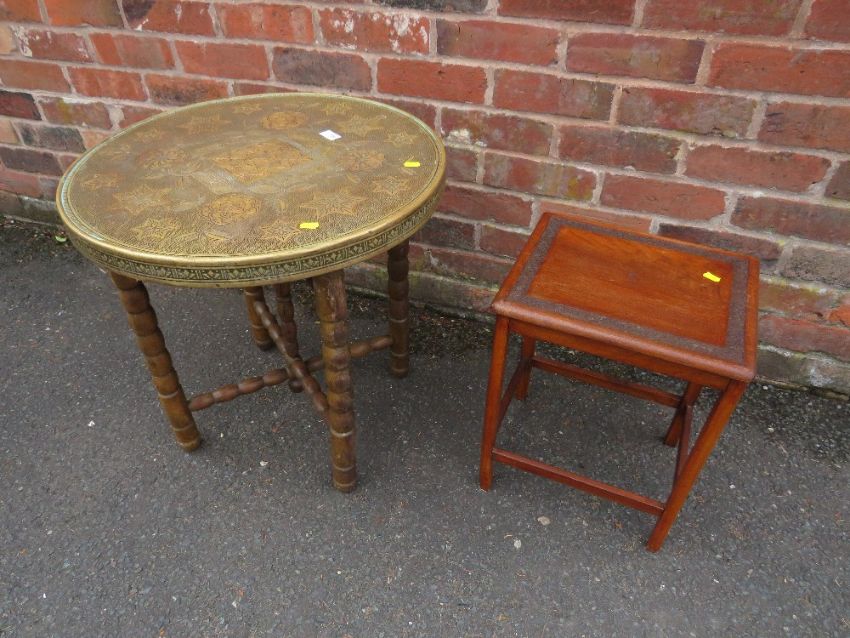 AN EASTERN BRASS TOPPED TABLE AND A SMALL OCCASIONAL (2)