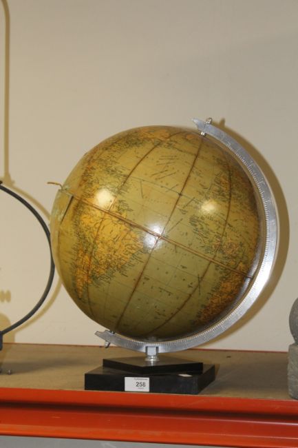 A VINTAGE DESKTOP GLOBE, DAMAGE EVIDENT
