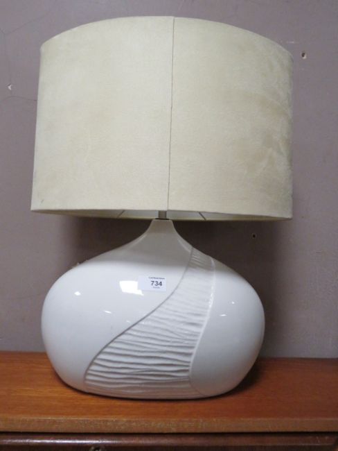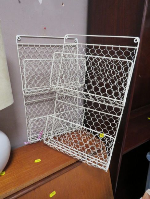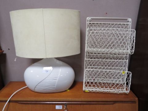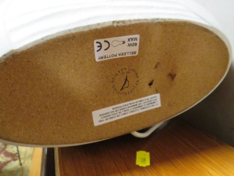 A MODERN BELLEEK TABLE LAMP WITH SHADE, WITH TWO WIREWORK PAPER HOLDERS (3)