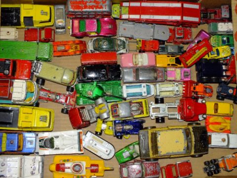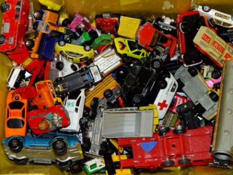 TWO BOXES OF DIECAST TOY CARS TO INCLUDE CORGI AND MATCHBOX EXAMPLES