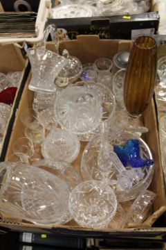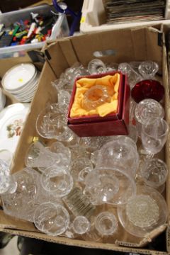 THREE TRAYS OF MOSTLY CUT GLASS TO INCLUDE BOHEMIA CRYSTAL