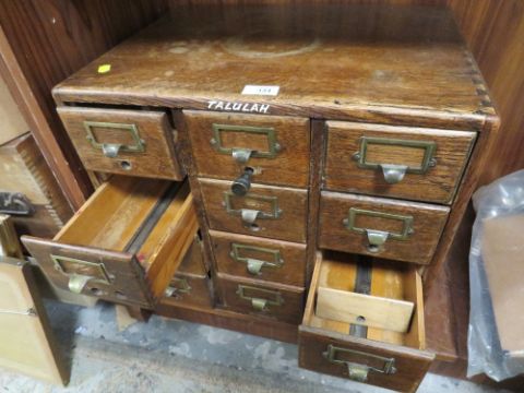 A VINTAGE OAK TWELVE INDEX DRAWS W 50 CM, H 42.5, CM, D 40 CM