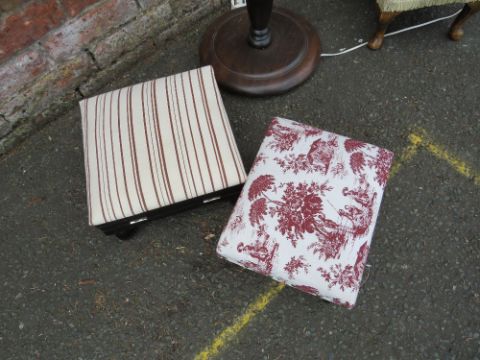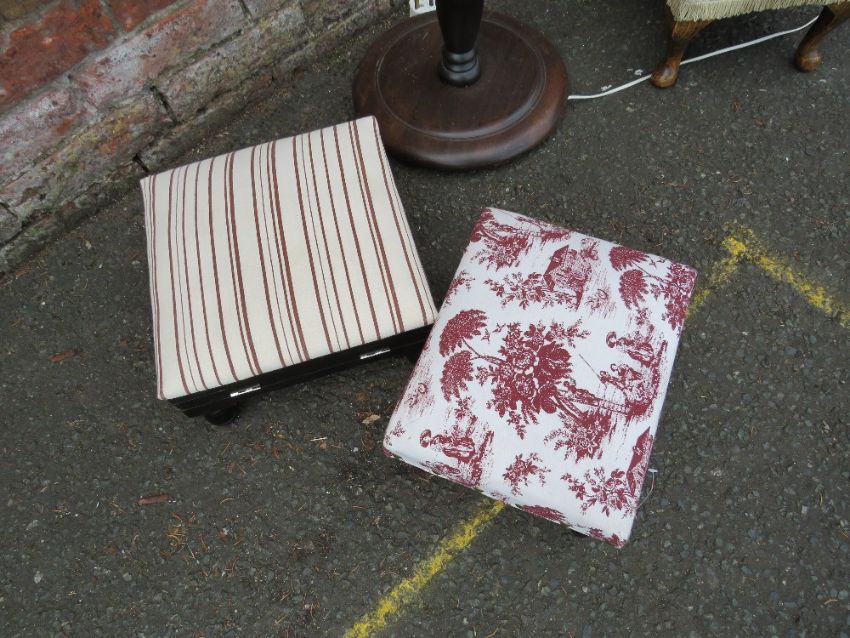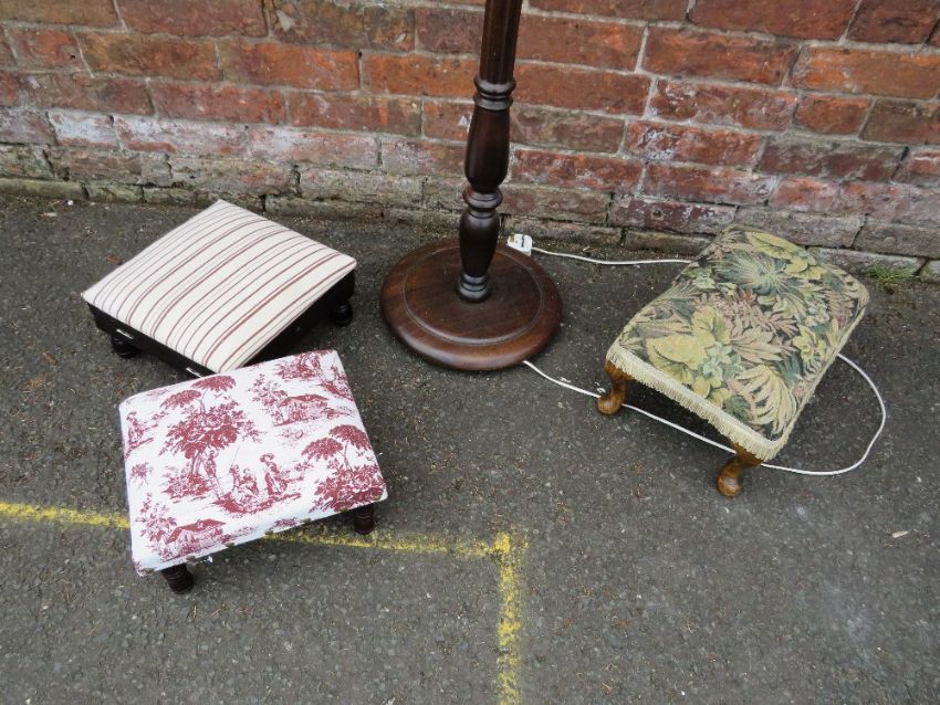 A STANDARD LAMP PLUS THREE STOOLS (4)