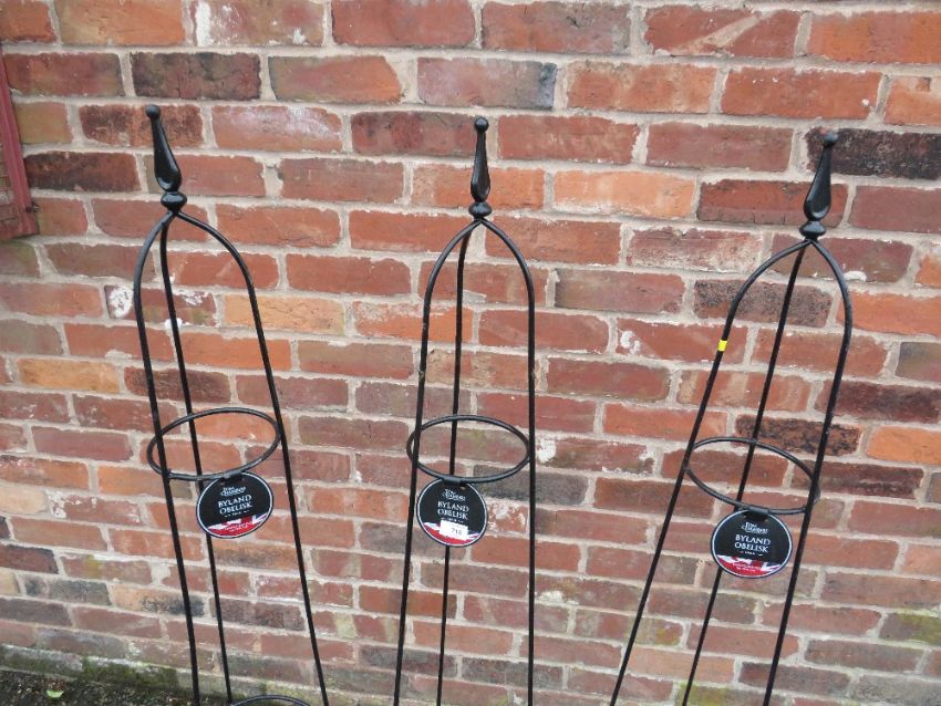 THREE 'TOM CHAMBERS' GARDEN OBELISKS H-150 CM (3)