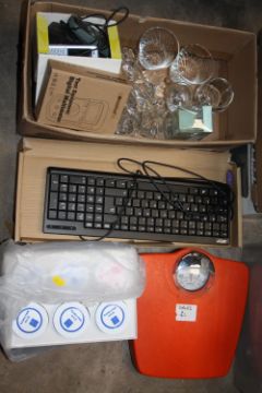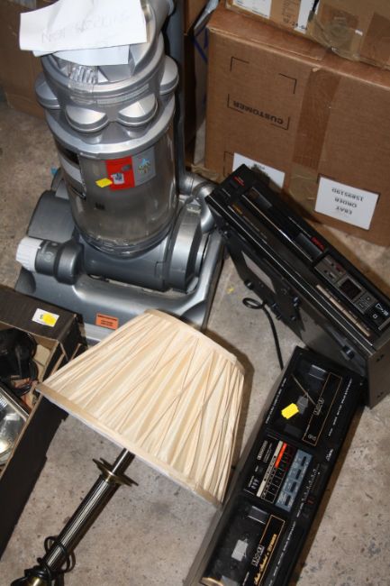 A MIXTURE OF ITEMS TO INCLUDE BULBS, GLASSWARE, ELECTRICALS, DYSON HOOVER FOR SPARES AND REPAIRS, FISHER STEREO PARTS - ALL AS FOUND