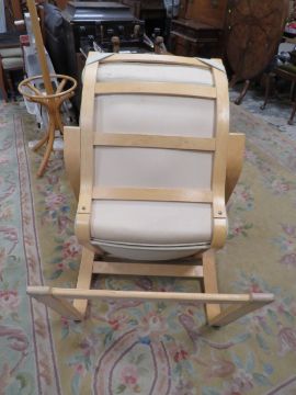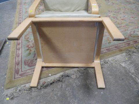 A MODERN IKEA STYLE ARMCHAIR AND STOOL