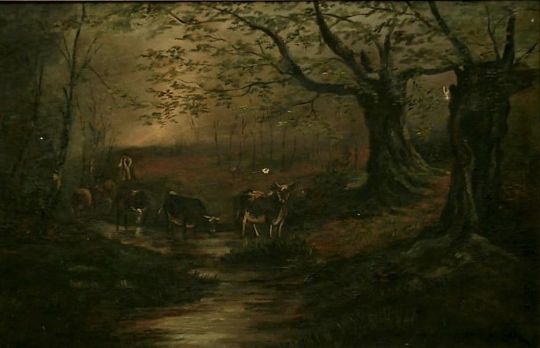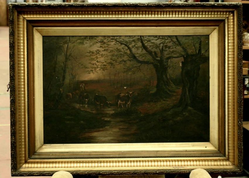 EARLY VICTORIAN BRITISH SCHOOL OIL ON CANVAS PASTORAL LANDSCAPE IN ORNATE ORIGINAL FRAME