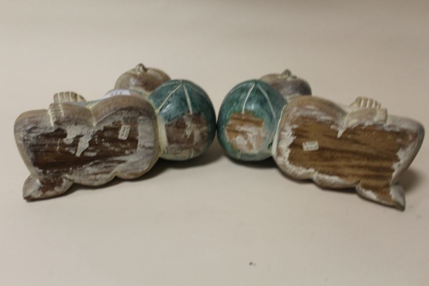 A PAIR OF CARVED HARD WOOD FIGURES OF A MALE AND FEMALE RESTING, H 17 CM
