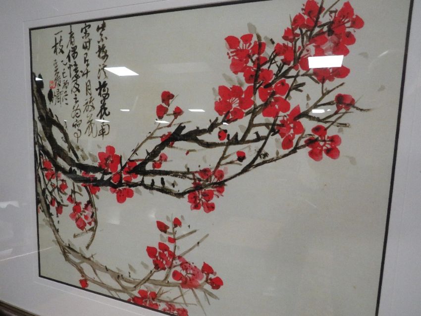 A LARGE MODERN CHINESE FLORAL PRINT 56 X 69 CM