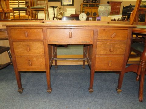 A VINTAGE OAK OFFICE DESK H 77 CM, W 122 CM