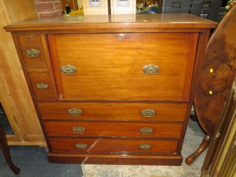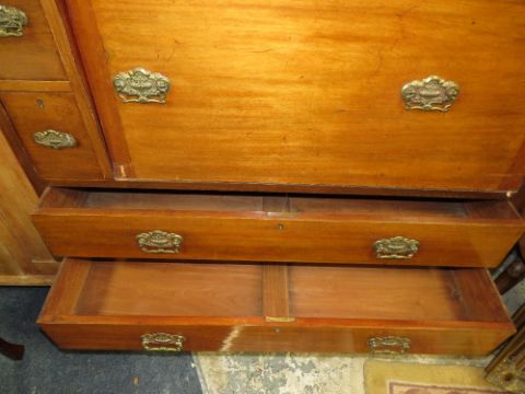 A LARGE ANTIQUE MAHOGANY SECRETAIRE CHEST H-119 W-120 CM